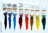Oil paints in tubes. Color palette. Art store, studio, exhibition.