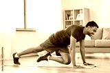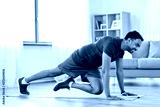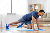sport, fitness and healthy lifestyle concept - man doing running plank exercise at home