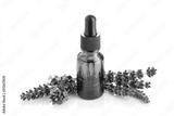 Lavender essential oil isolated on white background