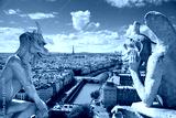 Famous gargoyles of Notre Dame overlooking Paris (compos)