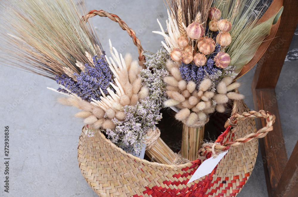 Dried lavender bouquet at local shop Romantic flower in paper wrapper