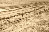 Tracks in the sand on the beach.