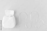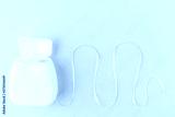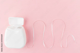 Dental floss on a pink background. The concept of mouth hygiene hygiene, dental health care, dentistry. Minimalism, top view, flat lay.