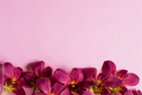 Branch of beautiful bordo orchid flowers on pink background. Floral pattern. Place for text.
