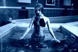 Attractive lady enters the water at the pool