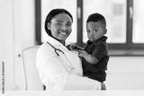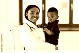 medicine, healtcare, pediatry and people concept - happy african american female doctor or pediatrician holding baby patient on medical exam at clinic