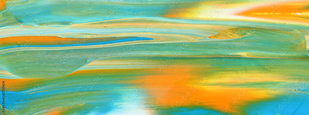 photography of abstract marbleized effect background. gold, yellow, blue and green creative colors. Beautiful paint. banner