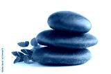 Stack of black spa stones with green branch isolated on white