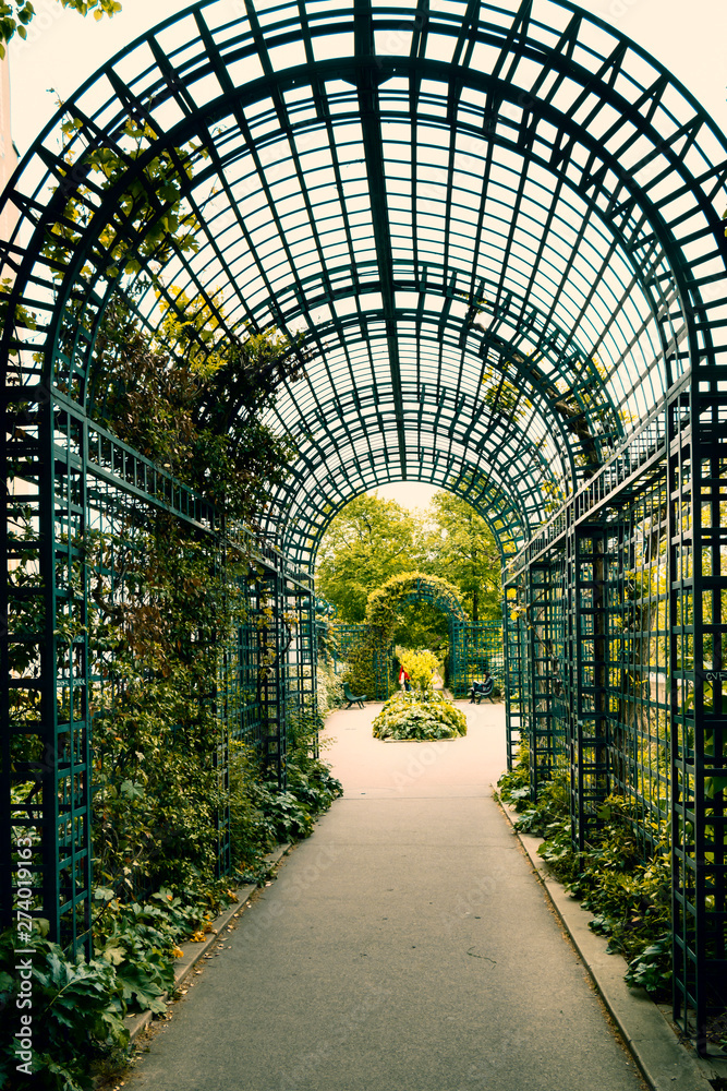 Paris, France - Coulee Verte Rene-Dumont - April 2019: Old green elevated promenade in Paris, France. Footpath from Bastille to the Bois De Vincennes