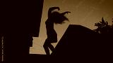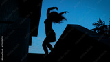 A man is dancing against a background of the evening sky. Dance in the style of Contemporary.