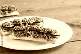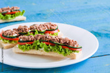 whole grain crisp bread topped with lettuce cucumber cream cheese tuna tomato.open sandwiches on the plate