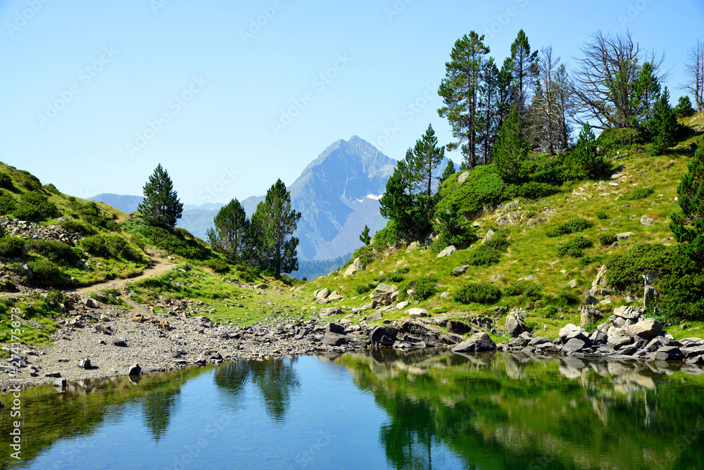 Beautiful mountain landscape in Neouvielle national nature reserve, Lac de Bastan,French Pyrenees.