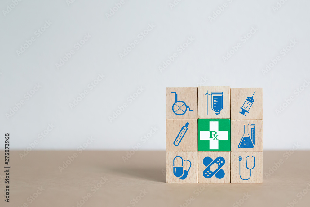 Medical and Health Wood Block Concept.