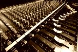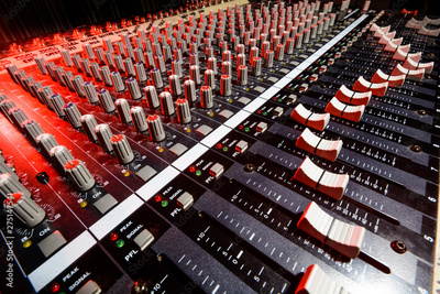 detail sound mixer in red and white light with great perspective