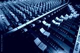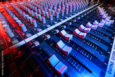 detail sound mixer in red and blue light with great perspective