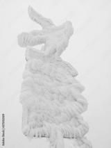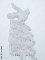 .Guidance road sign covered in snow and ice after snow storm