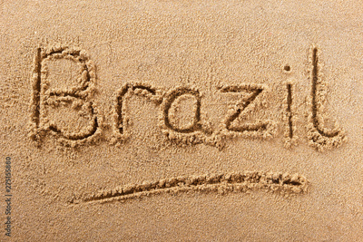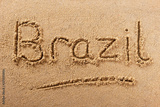 Brazil word written in sand on a sunny brazilian summer beach holiday vacation travel destination sign writing message photo