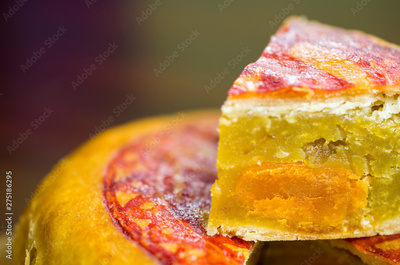 It is a moon circle cake with red fortune letters that Chinese people use to pay respect to various ceremonies