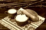 farm dairy products in a clay pot