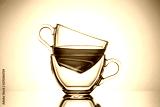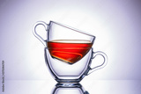 Two transparent mugs of tea. Central location, close-up.