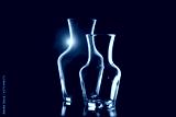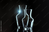 Outline of two glass vases on a black background, horizontal layout. flares.