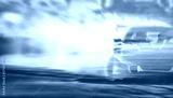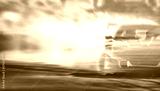 Double exposure sunset with car drifting, Blurred of image diffusion race drift car with lots of smoke from burning tires