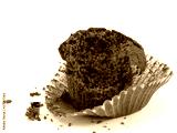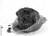 Chocolate muffin - half eaten on paper