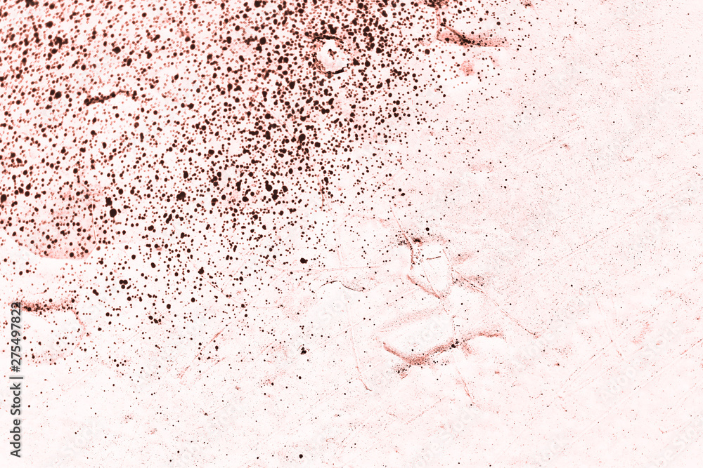 Vintage pink background. Rough painted wall of living coral color. Imperfect plane of beige colored. Uneven old decorative toned backdrop of beige tint. Texture of pink hue. Ornamental stony surface.