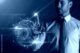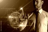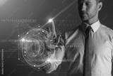 smart caucasian businessman hand point hologram of 3d gear with virtual reality business technology ideas concept