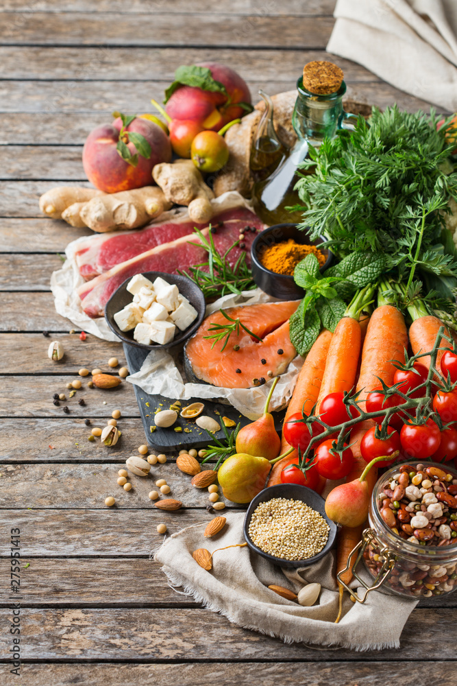 Healthy food for balanced flexitarian mediterranean diet concept