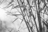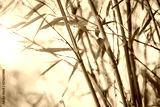 Bamboo forest closeup. Growing bamboos border design over blurred sunny background. Gardening