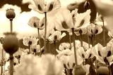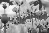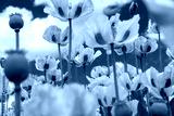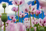 Pink Poppies Flowers in a Field WIth Blue Sky and White Clouds
