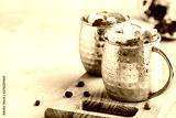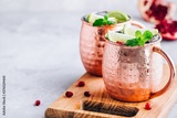 Iced Cold Moscow Mule cocktail with lime and pomegranate