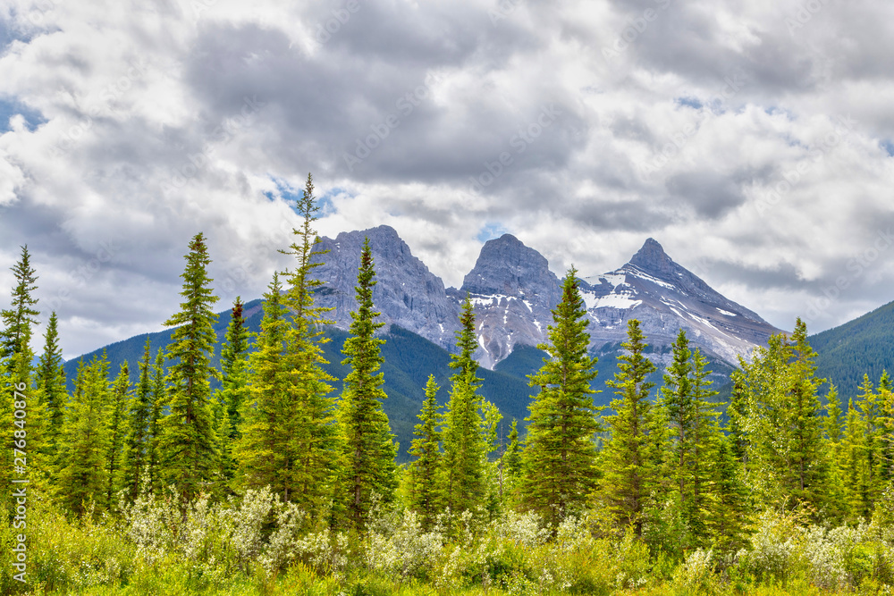 Three Sisters Mountain Peaks in the Canadian Rockies of Canmore, Alberta, Canada