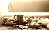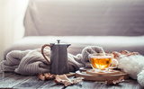 Cozy autumn still life with a cup of tea
