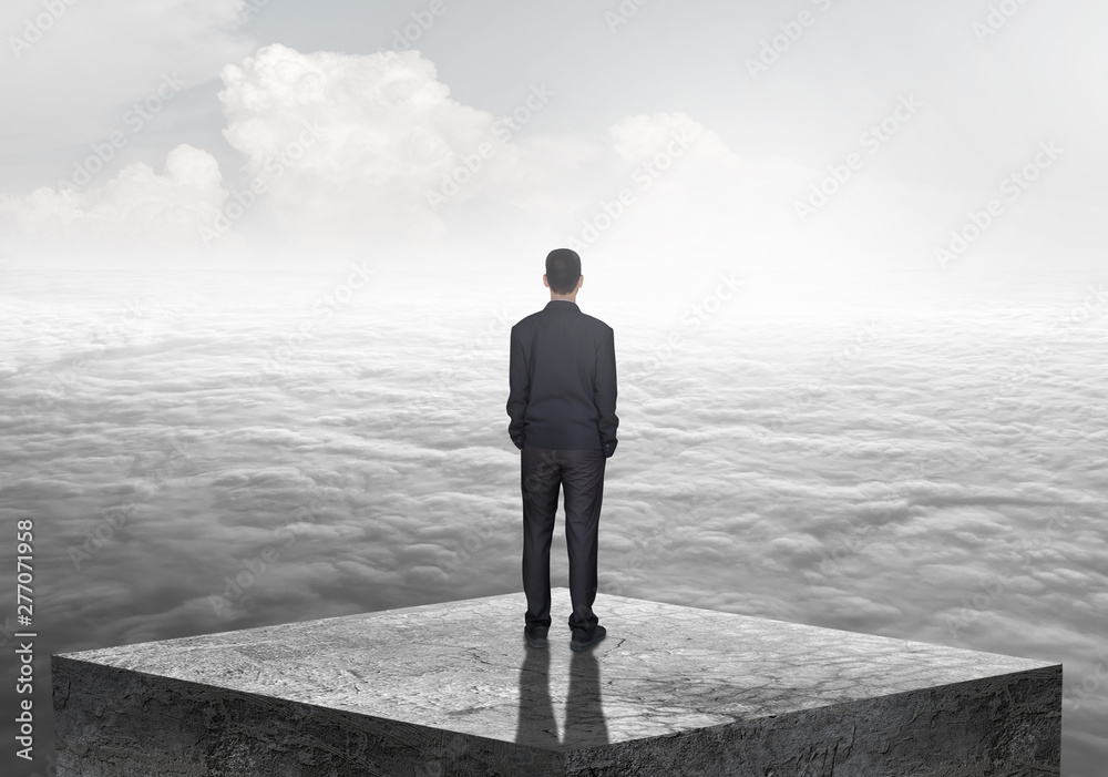 Successful Businessman standing on high stone bars. solitary leader, to the goal, to win the business.