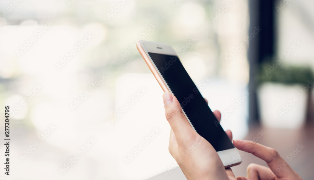women of happy smiling holding and using smartphone in cafe. The concept of using the phone is essential in everyday life.