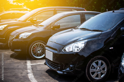 Car parked row on road