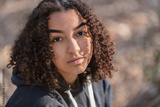 Sad Thoughtful Mixed Race Biracial African American Teenager Girl Woman