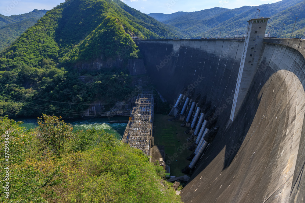 Bhumibol Dam with hydroelectric power plant and reservoir lake on Ping River at Tak province