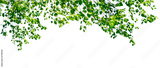 Birch twigs with the young lush green leaves hang down isolated on white. Natural birch background located on top of the picture.