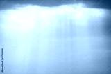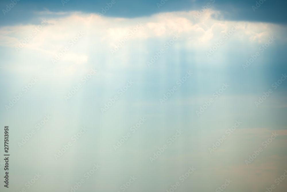 Sunset view of dramatic storm sky with dark clouds and bright sunbeams shining through them. Can be used as nature background