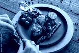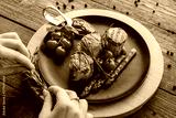 Food styling and restaurant meal serving. Grilled tenderloin medallions with vegetables