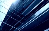 Abstract steel and glass facade detail background of high rise commercial building .Business or industrial successful concept background .