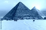The Pyramid of Menkaure and the Pyramid of Khafre in the sunset rays, Giza desert