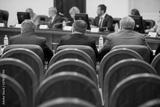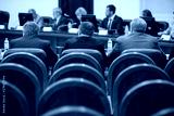 Session of Government. Conference room or seminar meeting room in business event. Academic classroom training course in lecture hall. blurred businessmen talking. modern bright office indoor