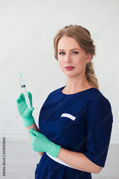beautiful woman cosmetologist holding syringe for anti-aging treatment