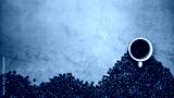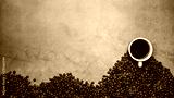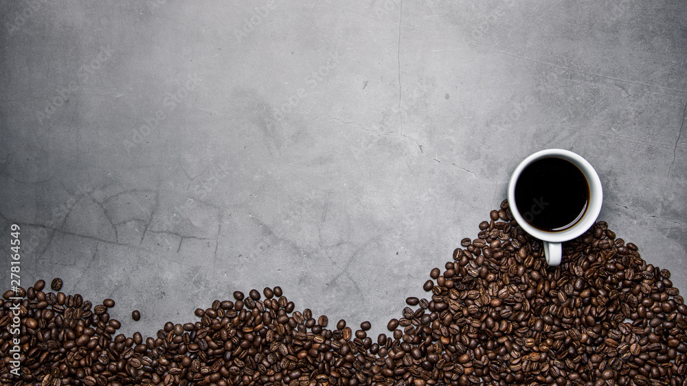 cup of coffee and beans on concrete background