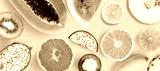 Creative layout made of papaya, grapefruit, lemon, kiwi, melon, watermelon, banana, pineapple, orange, mangosteen and flowers on pink background. Tropical flat lay. Summer fruits concept.