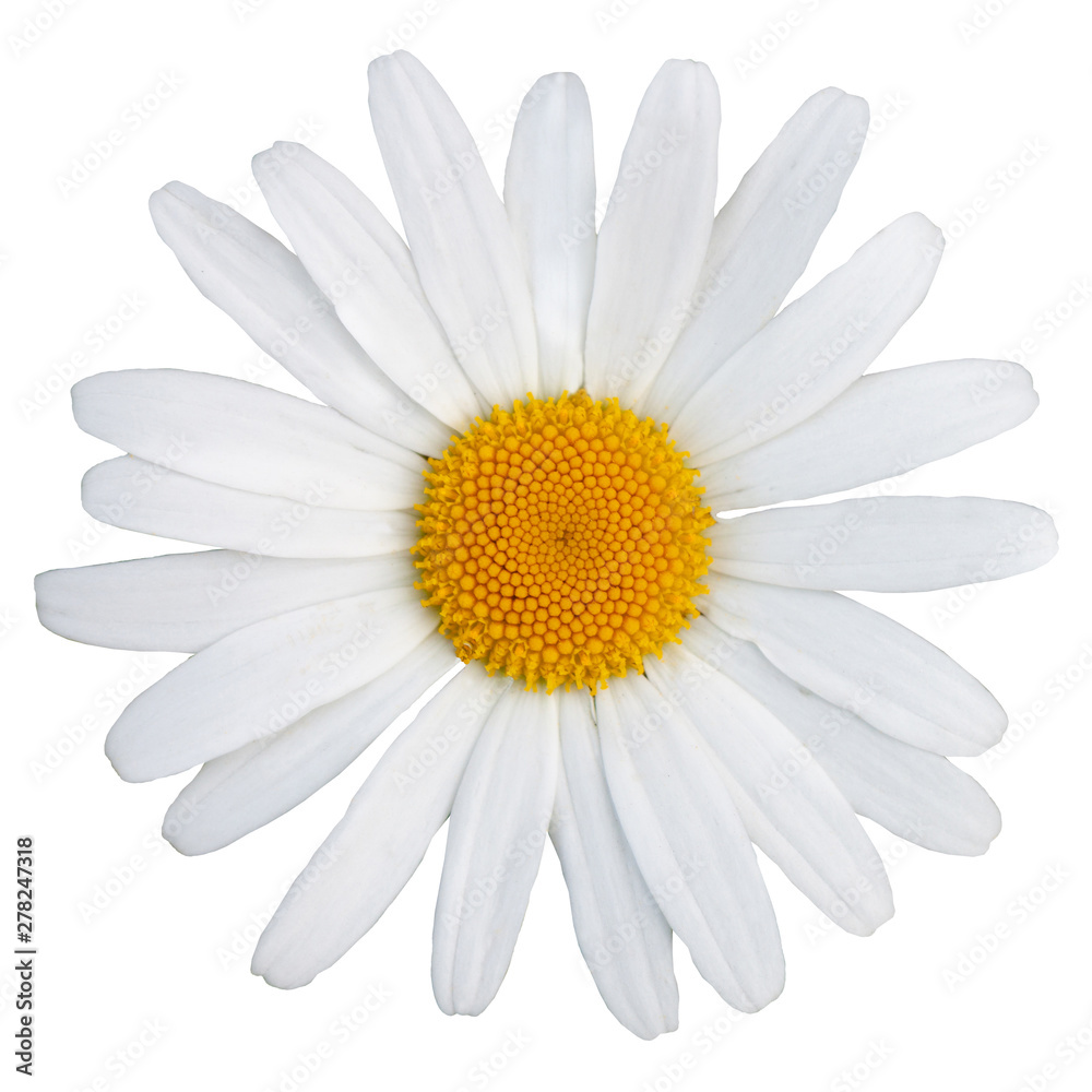 Beautiful white daisy with a yellow center. The Latin name is Matricāria chamomīlla. Isolate on white background.